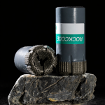 Diamond core bits shown with a hard rock sample (equipment context).